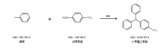 2.通过碘苯和对甲苯胺合成4-甲基三苯胺,收率约95%;