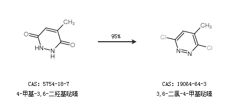 1.通过4-甲基-3,6-二羟基哒嗪合成3,6-二氯-4-甲基哒嗪,收率约95%;