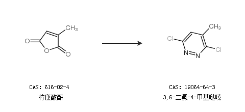 2.通过柠康酸酐合成3,6-二氯-4-甲基哒嗪