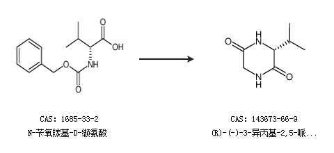 1.通过N-苄氧羰基-D-缬氨酸合成(R)-(-)-3-异丙基-2,5-哌嗪二酮