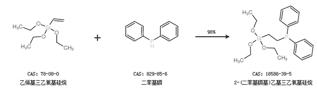 1.通过乙烯基三乙氧基硅烷和二苯基膦合成2-(二苯基膦基)乙基三乙氧基硅烷,收率约98%;
