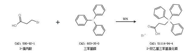 1.通过3-溴丙酸和三苯基膦合成2-羧乙基三苯基溴化磷,收率约92%;