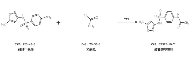 2.通过磺胺甲恶唑和乙酰氯合成醋磺胺甲噁唑,收率约71%;