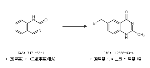 2.通过3-(氯甲基)-6-(三氟甲基)吡啶合成6-溴甲基-3,4-二氢-2-甲基-喹唑啉-4-酮