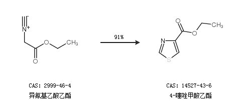 2.通过异氰基乙酸乙酯合成4-噻唑甲酸乙酯,收率约91%;