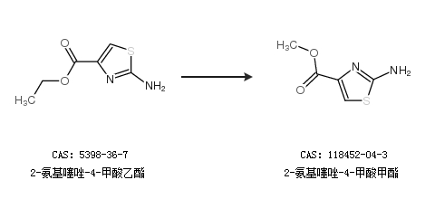 2.通过2-氨基噻唑-4-甲酸乙酯合成2-氨基噻唑-4-甲酸甲酯