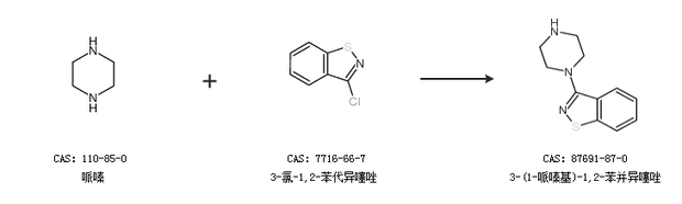 2.通过哌嗪和3-氯-1,2-苯代异噻唑合成3-(1-哌嗪基)-1,2-苯并异噻唑