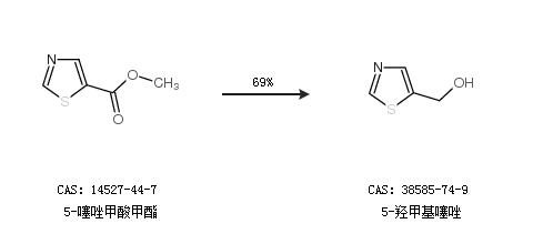 2.通过5-噻唑甲酸甲酯合成5-羟甲基噻唑,收率约69%;