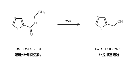 1.通过噻唑-5-甲酸乙酯合成5-羟甲基噻唑,收率约75%;