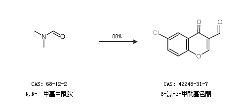 2.通过N,N-二甲基甲酰胺合成6-氯-3-甲酰基色酮,收率约88%;