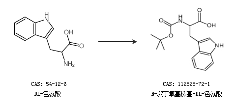 1.通过DL-色氨酸合成N-叔丁氧基羰基-DL-色氨酸
