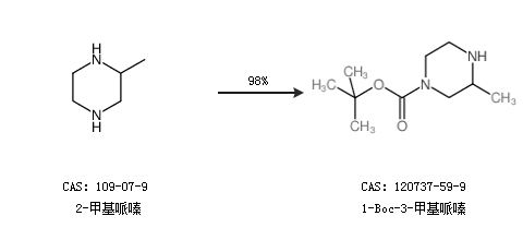 1.通过2-甲基哌嗪合成1-Boc-3-甲基哌嗪,收率约98%;