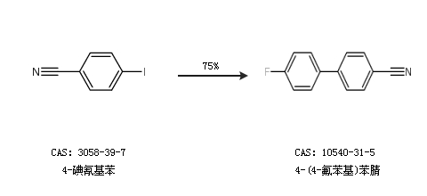 2.通过4-碘氰基苯合成4-(4-氟苯基)苯腈,收率约75%;