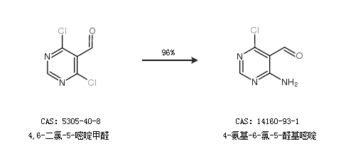 1.通过4,6-二氯-5-嘧啶甲醛合成4-氨基-6-氯-5-醛基嘧啶,收率约96%;