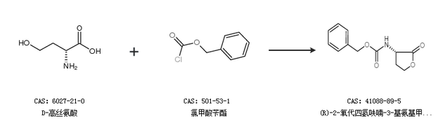 1.通过D-高丝氨酸和氯甲酸苄酯合成(R)-2-氧代四氢呋喃-3-基氨基甲酸苄酯,收率约72%;