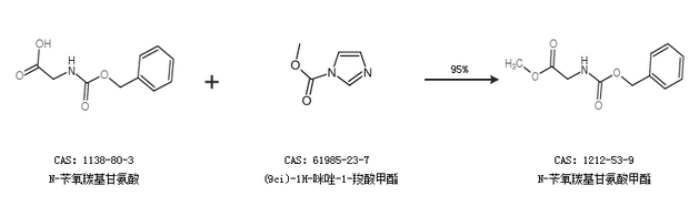 2.通过N-苄氧羰基甘氨酸和(9ci)-1H-咪唑-1-羧酸甲酯合成N-苄氧羰基甘氨酸甲酯,收率约95%;