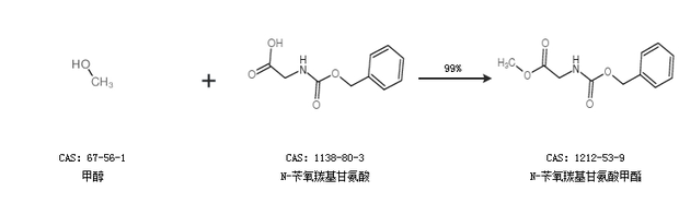 1.通过甲醇和N-苄氧羰基甘氨酸合成N-苄氧羰基甘氨酸甲酯,收率约99%;