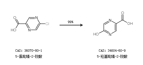 2.通过5-氯吡嗪-2-羧酸合成5-羟基吡嗪-2-羧酸,收率约99%;