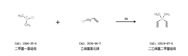 2.通过二甲基一氯硅烷和乙烯基氯化镁合成二乙烯基二甲基硅烷,收率约9%;