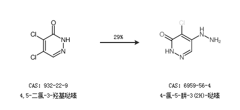 2.通过4,5-二氯-3-羟基哒嗪合成4-氯-5-肼-3(2H)-哒嗪,收率约29%;
