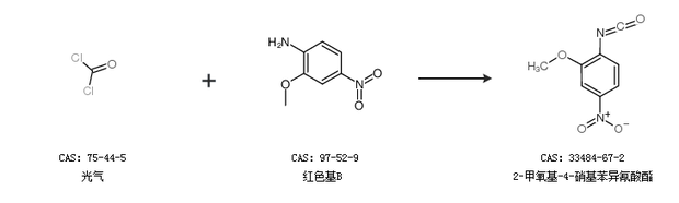 1.通过光气和红色基B合成2-甲氧基-4-硝基苯异氰酸酯
