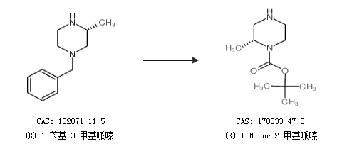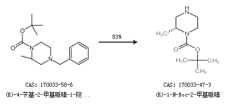 1.通过(R)-4-苄基-2-甲基哌嗪-1-羧酸叔丁酯合成(R)-1-N-Boc-2-甲基哌嗪,收率约83%;