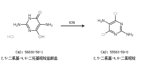 1.通过2,5-二氨基-4,6-二羟基嘧啶盐酸盐合成2,5-二氨基-4,6-二氯嘧啶,收率约63%;