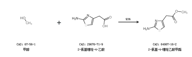 1.通过甲醇和2-氨基噻唑-4-乙酸合成2-氨基-4-噻唑乙酸甲酯,收率约93%;