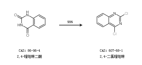 1.通过2,4-喹唑啉二酮合成2,4-二氯喹唑啉,收率约99%;