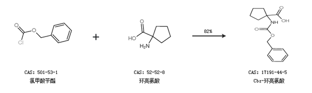1.通过氯甲酸苄酯和环亮氨酸合成Cbz-环亮氨酸,收率约82%;