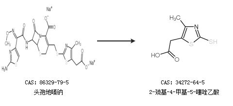 1.通过头孢地嗪钠合成2-巯基-4-甲基-5-噻唑乙酸