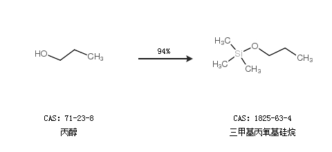 1.通过丙醇和三甲基氯硅烷合成三甲基丙氧基硅烷,收率约76%;