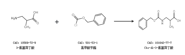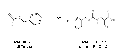 2.通过氯甲酸苄酯合成Cbz-dl-3-氨基异丁酸,收率约64%;