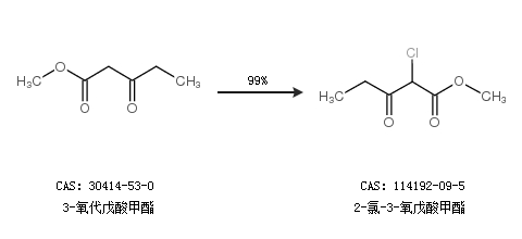 1.通过3-氧代戊酸甲酯合成2-氯-3-氧戊酸甲酯,收率约99%;