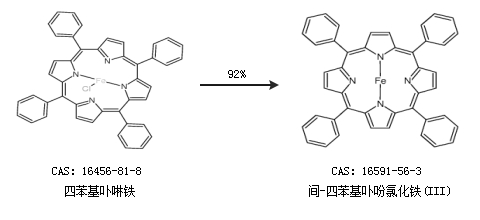 1.通过四苯基卟啉铁合成间-四苯基卟吩氯化铁(III),收率约92%;