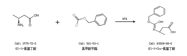1.通过(S)-3-氨基丁酸和氯甲酸苄酯合成(S)-3-Cbz-氨基丁酸,收率约97%;