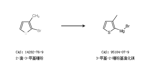 1.通过2-溴-3-甲基噻吩合成3-甲基-2-噻吩基溴化镁