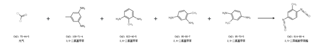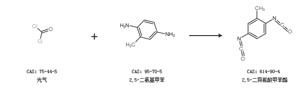 1.通过光气、3,5-二氨基甲苯、2,6-二氨基甲苯、2,4-二氨基甲苯和2,5-二氨基甲苯合成2,5-二异氰酸甲苯酯