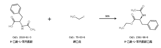 1.通过N-乙酰-L-苯丙氨酸和碘乙烷合成N-乙酰-L-苯丙氨酸乙酯,收率约98%;