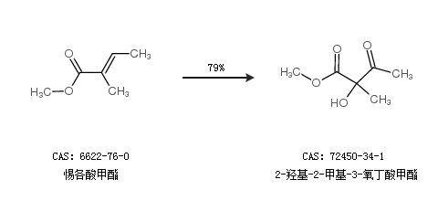 1.通过惕各酸甲酯合成2-羟基-2-甲基-3-氧丁酸甲酯,收率约79%;