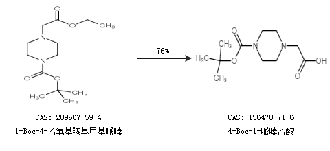 1.通过1-Boc-4-乙氧基羰基甲基哌嗪合成4-Boc-1-哌嗪乙酸,收率约76%;