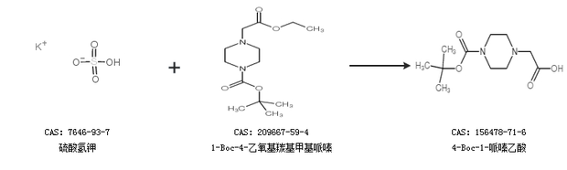 2.通过硫酸氢钾和1-Boc-4-乙氧基羰基甲基哌嗪合成4-Boc-1-哌嗪乙酸