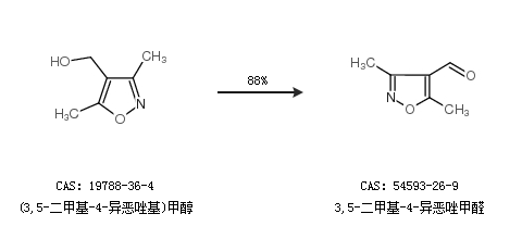 1.通过(3,5-二甲基-4-异恶唑基)甲醇合成3,5-二甲基-4-异恶唑甲醛,收率约88%;