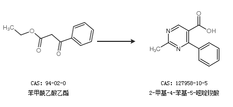 2.通过苯甲酰乙酸乙酯合成2-甲基-4-苯基-5-嘧啶羧酸