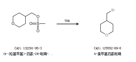 1.通过(4-(羟基甲基)-四氢-2H-吡喃-4-基)甲烷磺酸盐合成4-溴甲基四氢吡喃,收率约78%;