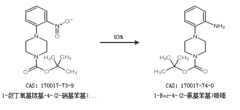 1.通过1-叔丁氧基羰基-4-(2-硝基苯基)哌嗪合成1-Boc-4-(2-氨基苯基)哌嗪,收率约93%;