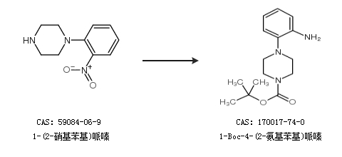 2.通过1-(2-硝基苯基)哌嗪合成1-Boc-4-(2-氨基苯基)哌嗪