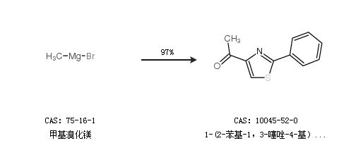 1.通过甲基溴化镁合成1-(2-苯基-1,3-噻唑-4-基)乙酮,收率约97%;