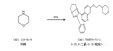 1.通过吗啉合成4-[5,6-二氢-2-(2-吡啶)-4H-吡咯并[1,2-b]吡唑-3-基]-7-[2-(4-吗啉)乙氧基]喹啉,收率约97%;