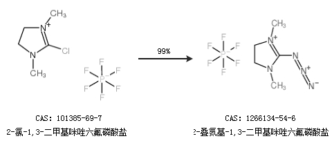 1.通过2-氯-1,3-二甲基咪唑六氟磷酸盐合成2-叠氮基-1,3-二甲基咪唑六氟磷酸盐,收率约99%;